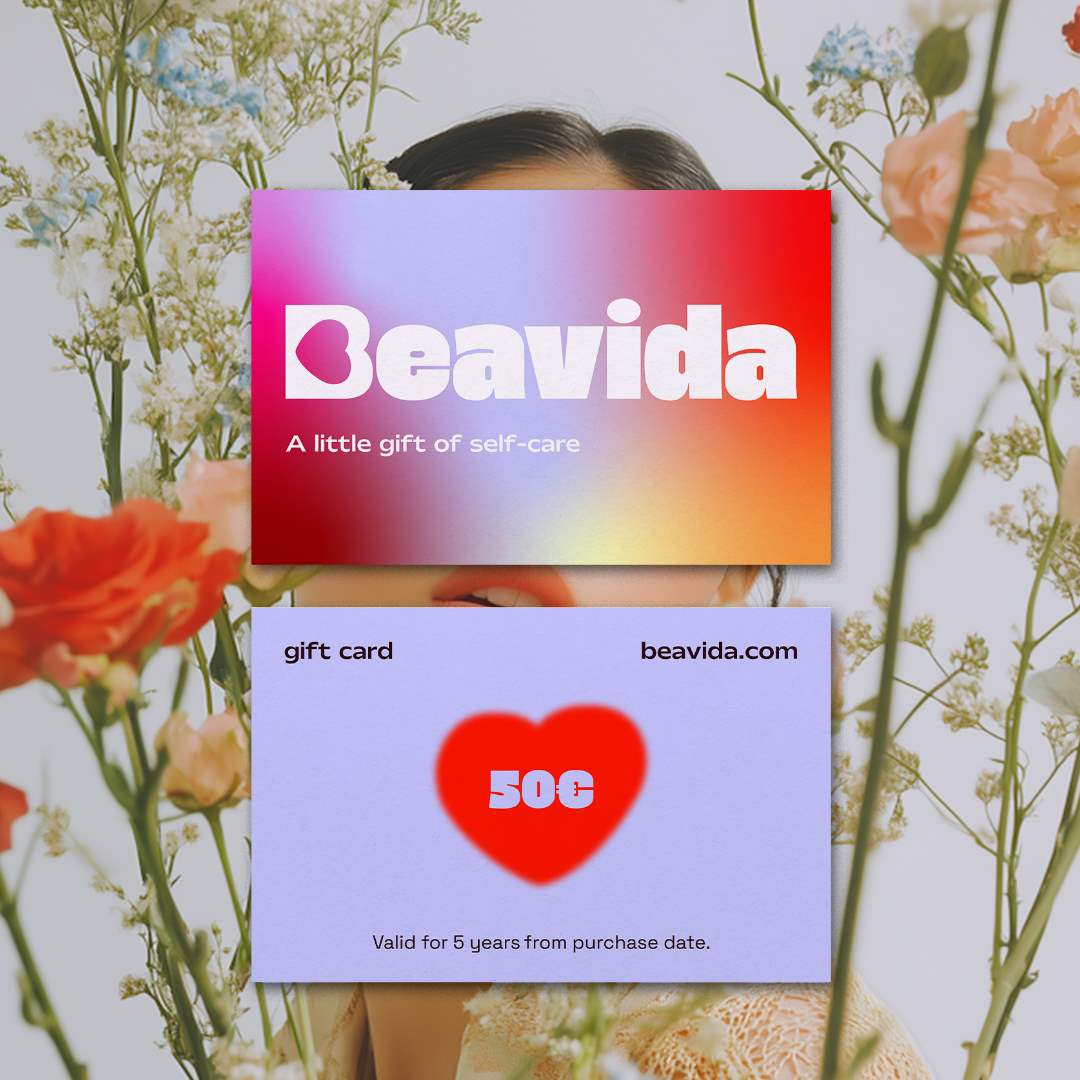 Beavida gift card amongst flowers